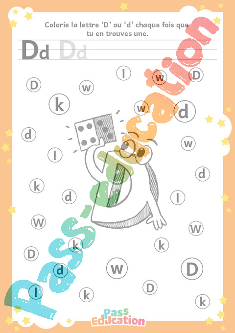 Colorie la lettre ‘D’ ou ‘d’ chaque fois que tu en trouves une.