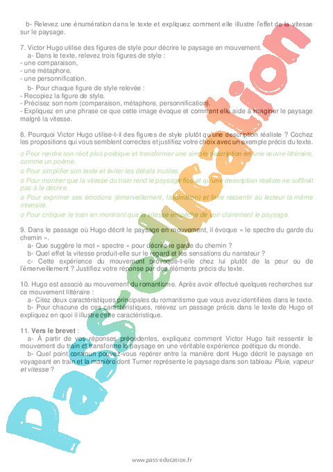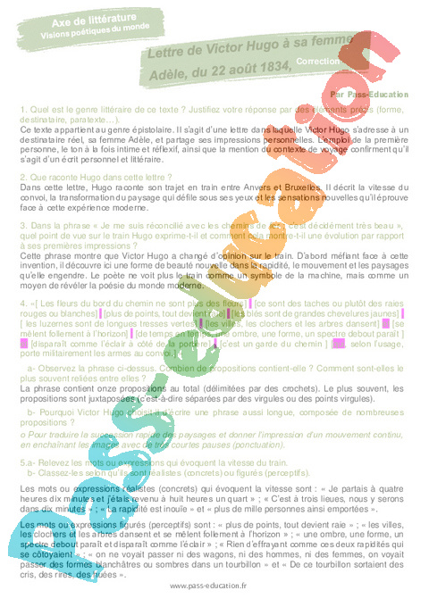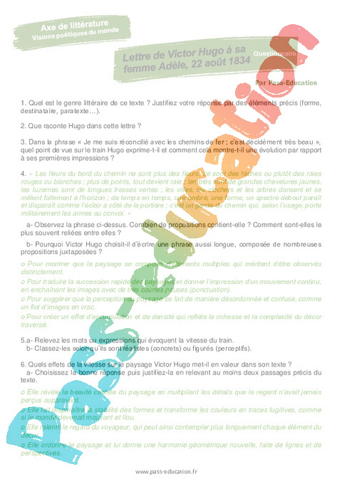 Correction Questionnaire : 3eme Secondaire Lettre de Victor Hugo à sa femme Adèle pdf