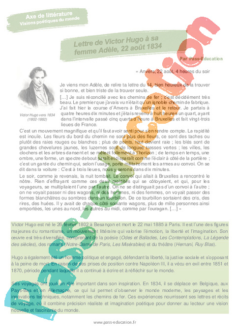 Littérature : 3eme Secondaire Lettre de Victor Hugo à sa femme Adèle pdf
