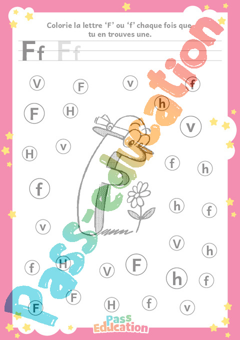Colorie la lettre ‘F’ ou ‘f’ chaque fois que tu en trouves une.