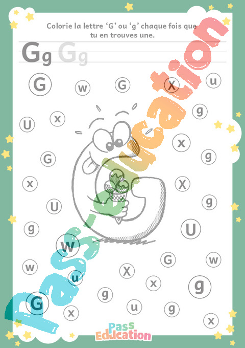 Colorie la lettre ‘G’ ou ‘g’ chaque fois que tu en trouves une.