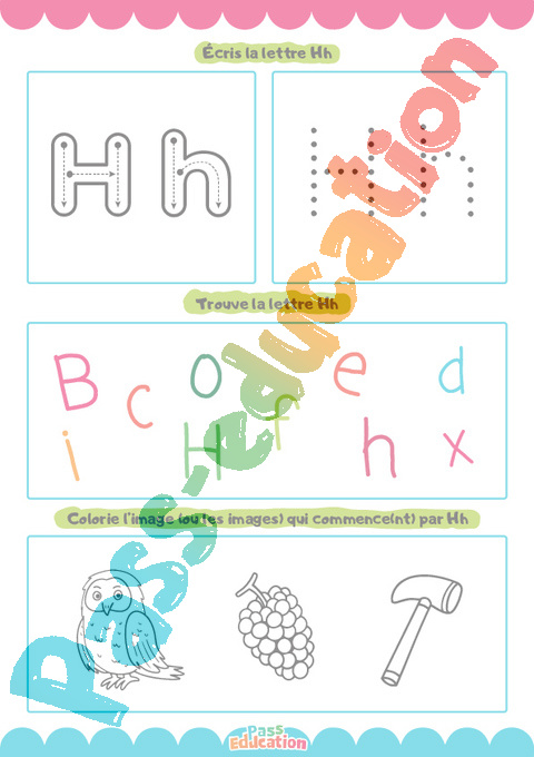 Une activité ludique pour apprendre à écrire la lettre H en majuscule et minuscule, reconnaître sa forme et la repérer dans un mot. Les enfants termineront en coloriant une image qui commence par H, pour renforcer l’apprentissage par le jeu.
