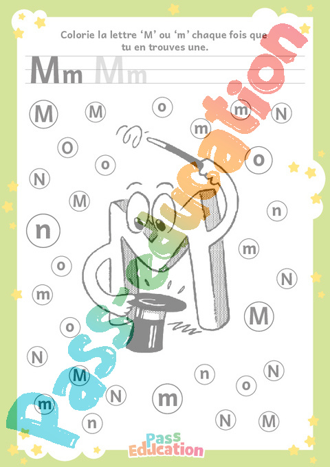 Colorie la lettre ‘M’ ou ‘m’ chaque fois que tu en trouves une.