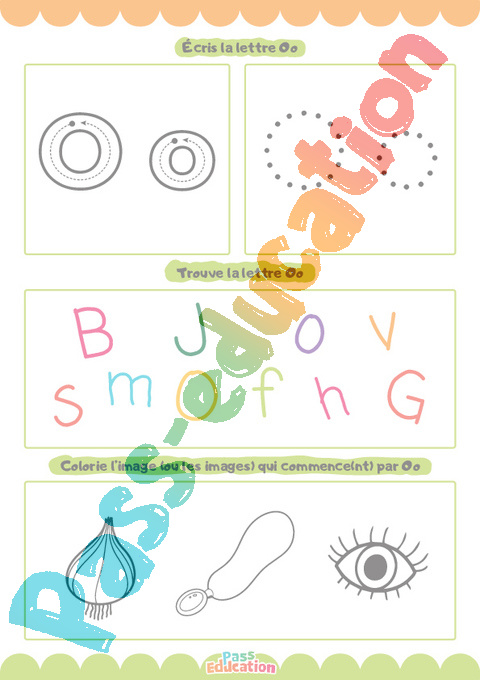 Une activité ludique pour apprendre à écrire la lettre O en majuscule et minuscule, reconnaître sa forme et la repérer dans un mot. Les enfants termineront en coloriant une image qui commence par O, pour renforcer l’apprentissage par le jeu.