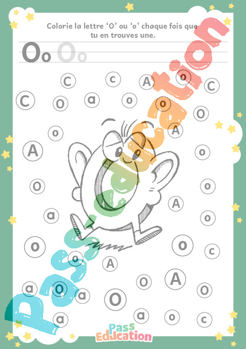 Colorie la lettre ‘O’ ou ‘o’ chaque fois que tu en trouves une.