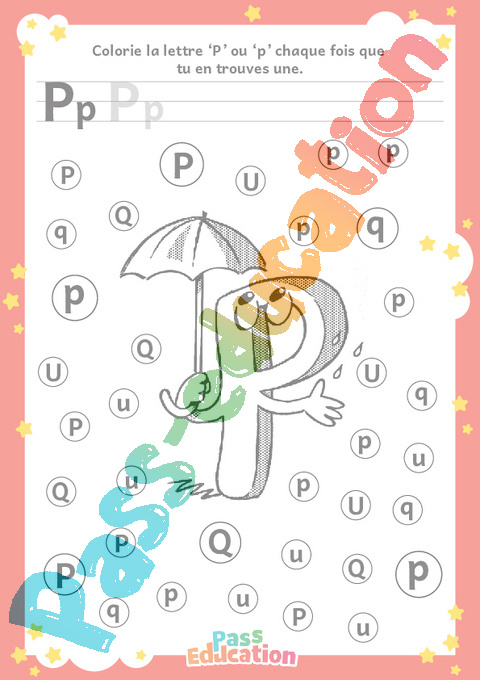 Colorie la lettre ‘P’ ou ‘p’ chaque fois que tu en trouves une.