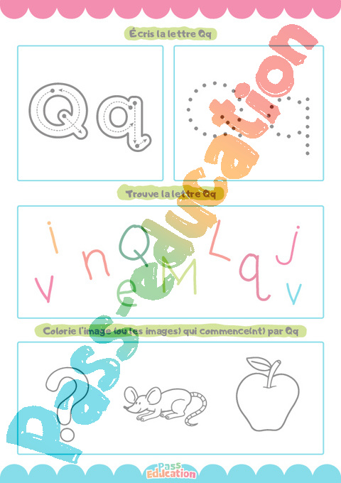 Apprendre à écrire la lettre Q en majuscule et minuscule en maternelle : : 2eme, 3eme Maternelle .