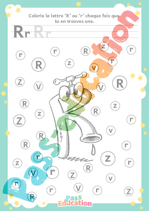Colorie la lettre ‘R’ ou ‘r’ chaque fois que tu en trouves une.