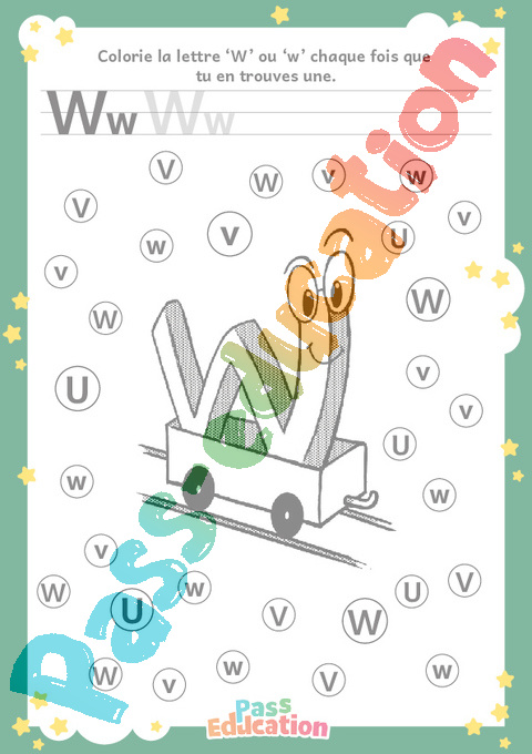 Discrimination visuelle en : 2eme, 3eme Maternelle sur la lettre W.