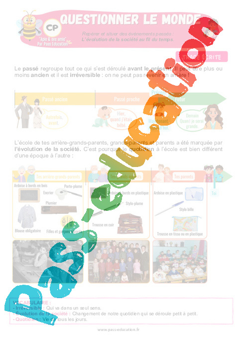 Leçon – L’évolution de la société au fil du temps en 1ere Primaire – Apis & ses amis : Questionner le monde.