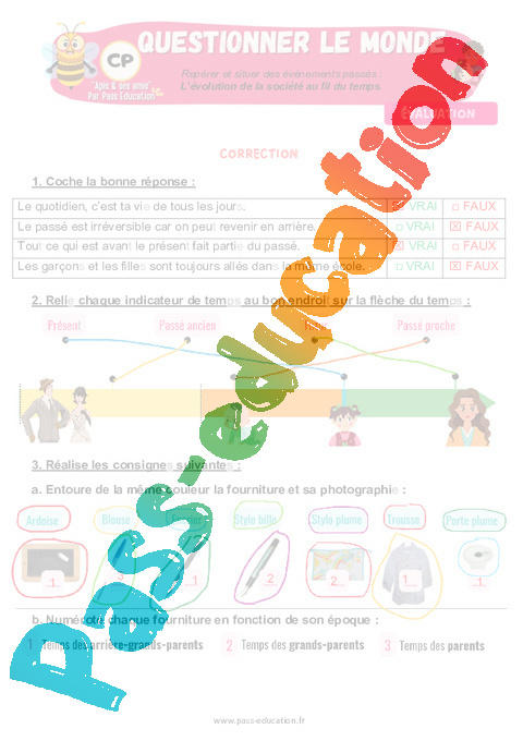 6.1 Correction Evaluation : 1ere Primaire L’évolution de la société au fil du temps pdf