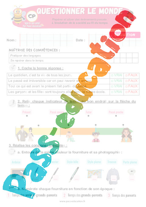 Evaluation – L’évolution de la société au fil du temps au : 1ere Primaire – Apis & ses amis : Questionner le monde.