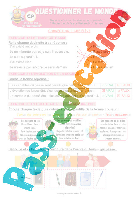 4.1 Correction Fiche élève : 1ere Primaire L’évolution de la société au fil du temps pdf