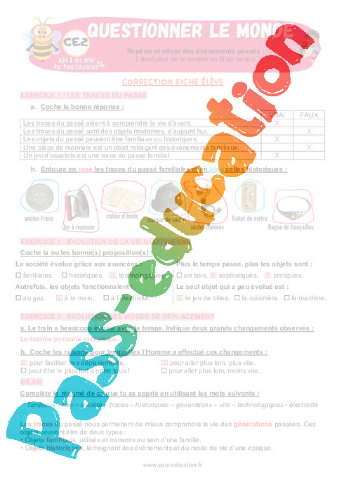 4.1 Correction Fiche Elève : 3eme Primaire L’évolution de la société au fil du temps pdf