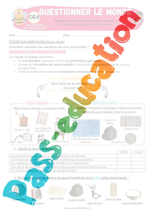 Exercices – L’évolution de la société au fil du temps en 3eme Primaire – Apis & ses amis : Questionner le monde.