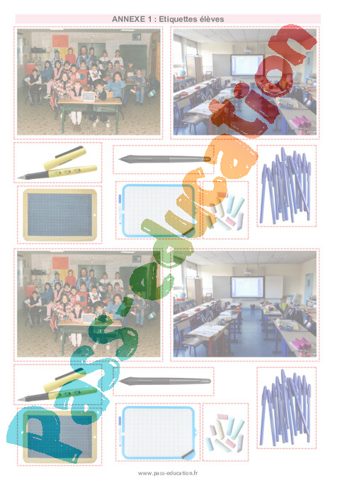 | – Voici quelques photographies de différents moments et objets de classe. Ensemble, nous allons nommer ce que nous voyons. L’enseignant présente une à une les images en grand format qu’il accroche au fur et à mesure au tableau. – « Par deux, vous allez maintenant trier ces images en deux groupes : imaginez que vous devez les répartir dans deux sacs différents. Réfléchissez bien à quelles images vous pouvez mettre ensemble. » L’enseignant fait référence aux deux colonnes tracées au tableau, avec les images aimantées au-dessous. Les élèves disposent des reproductions de ces images en petit format, et devront les disposer d’un côté ou de l’autre de leur table. L’enseignant passe dans les rangs pour aider, favoriser l’échange entre les deux élèves, si nécessaire. | -Confrontation des classements réalisés par les élèves, l’enseignant assure l’échange oral entre les apprenants. Il prend en considération le travail des élèves et rebondit sur leurs réponses pour les amener au tri attendu. – Si aucun tri évoqué par les élèves ne correspond aux attentes, l’enseignant peut proposer son tri : « Vous avez terminé de ranger toutes ces images. Je vais maintenant vous proposer mon propre tri, regardez. » L’enseignant dispose les images de l’école de leurs parents dans une première colonne et les images de l’école d’aujourd’hui dans la seconde. – Pour nommer les colonnes, l’enseignant cherche à amener petit à petit les élèves à proposer du lexique qui peut s’approcher des réponses possibles : Il note tout ce que proposent les élèves dans chaque colonne. La vidéo qui suit permet d’amener une réponse à cette question et de nommer la colonne avec certitude. Pour introduire la suite de l’apprentissage sur l’école d’autrefois, l’enseignant pointe la photo avec le stylo bille : – « Selon vous, est-ce que vos grands-parents ou vos arrière-grands-parents utilisaient le même matériel scolaire ? » |