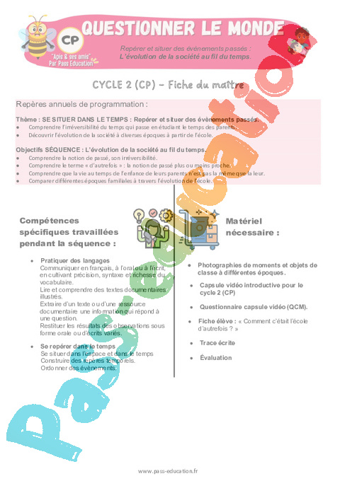 Séquence + vidéo – L’évolution de la société au fil du temps : 1ere Primaire – Séquence + vidéo – Apis & ses amis.