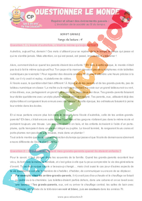 2 Script : 1ere Primaire L’évolution de la société au fil du temps pdf