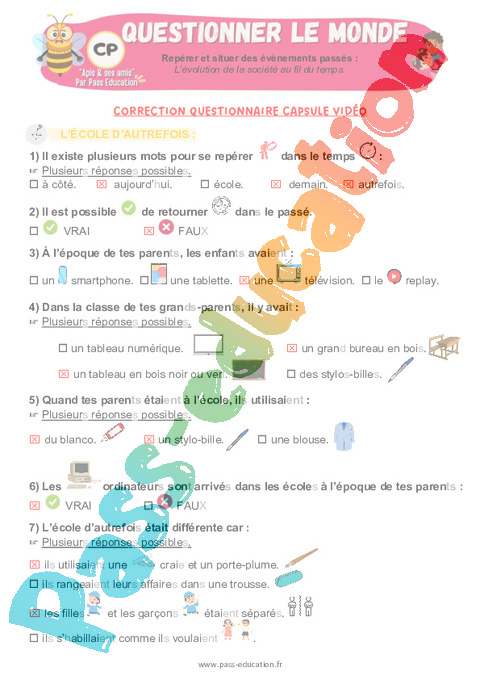 3.1 Correction QCM capsule vidéo : 1ere Primaire L’évolution de la société au fil du temps pdf