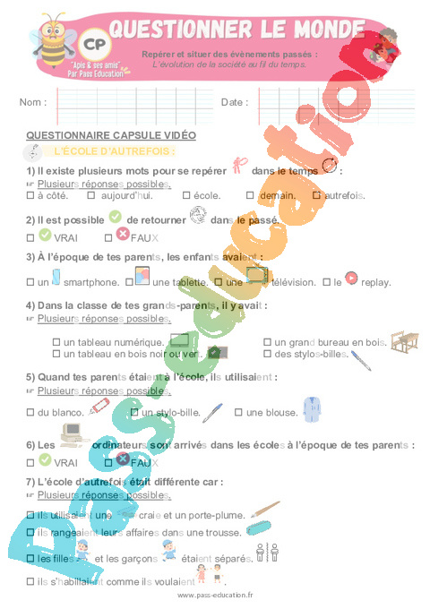 3 QCM capsule vidéo : 1ere Primaire L’évolution de la société au fil du temps pdf