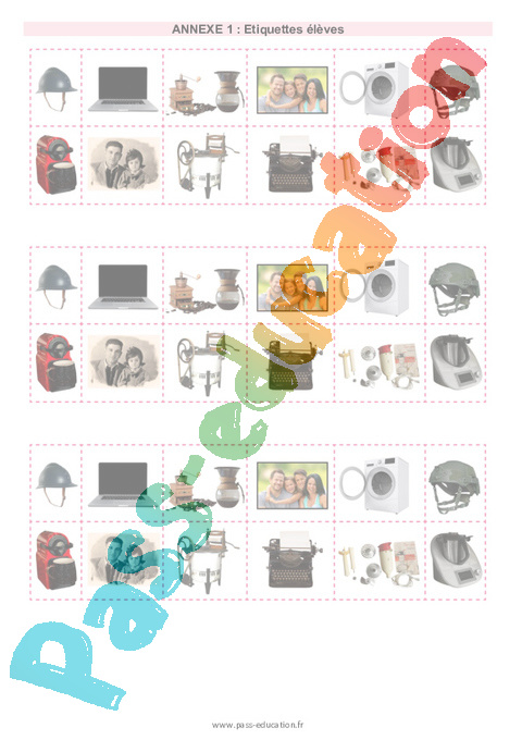 | – « Regardez bien ces images. Ensemble, nous allons dire ce que nous y reconnaissons ». L’enseignant présente une à une les images en grand format qu’il accroche au fur et à mesure au tableau. – « Par deux, vous allez maintenant trier ces images en deux groupes : imaginez que vous devez les répartir dans deux sacs différents. Réfléchissez bien à quelles images vous pouvez mettre ensemble. » L’enseignant fait référence aux deux colonnes tracées au tableau, avec les images aimantées au-dessous. Les élèves disposent des reproductions de ces images en petit format, et devront les disposer d’un côté ou de l’autre de leur table. L’enseignant passe dans les rangs pour aider, favoriser l’échange entre les deux élèves, si nécessaire. | -Confrontation des classements réalisés par les élèves, l’enseignant assure l’échange oral entre les apprenants. Il prend en considération le travail des élèves et rebondit sur leurs réponses pour les amener au tri attendu. – Si aucun tri évoqué par les élèves ne correspond aux attentes, l’enseignant peut alors proposer son tri : « Vous avez fini de ranger toutes ces images. Je vais maintenant vous proposer mon propre tri, regardez. » L’enseignant dispose alors les images d’objets représentant des traces du passé dans la première colonne et de celles d’aujourd’hui dans la seconde. – Pour nommer les colonnes, l’enseignant cherche à amener petit à petit les élèves à proposer du lexique qui peut s’approcher des réponses possibles : Il note tout ce que proposent les élèves dans chaque colonne. La vidéo qui suit permet d’amener une réponse à cette question et de nommer la colonne avec certitude. Pour introduire la suite de l’apprentissage sur l’évolution de la société, l’enseignant pointe un objet du passé : – « D’où viennent ces objets du passé selon vous ? » |