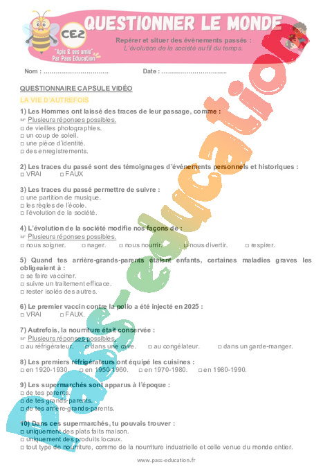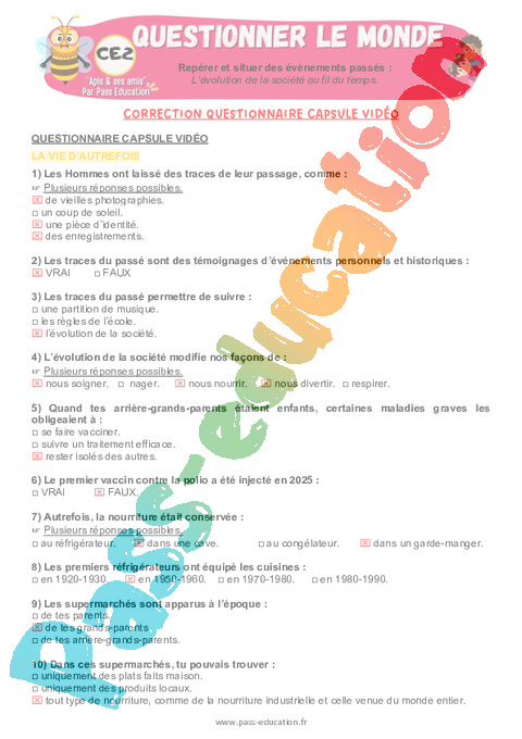 3.1 Correction QCM capsule vidéo : 3eme Primaire L’évolution de la société au fil du temps pdf