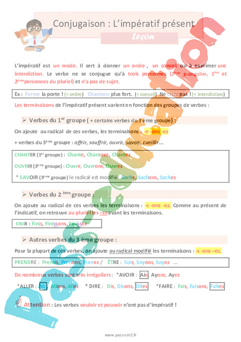 Leçon en 5eme Primaire : L’impératif présent.