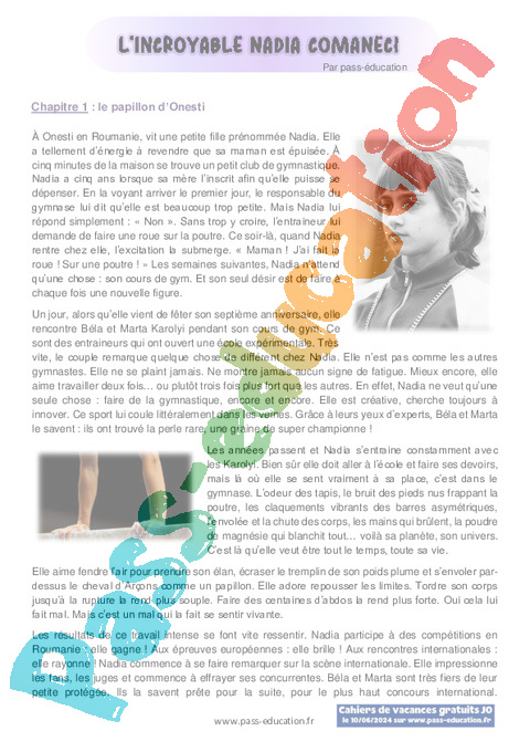 Littérature : 4eme, 5eme, 6eme Primaire L’incroyable Nadia Comaneci pdf