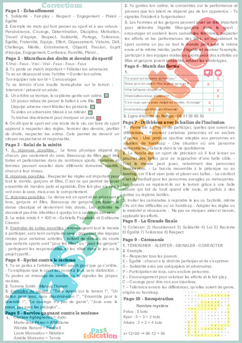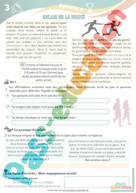 Fichier d’activités à imprimer sur la lutte contre la discrimination et le racisme dans le sport (EMC) pour la 6eme Primaire 1ere Secondaire et la 6eme Primaire 1ere Secondaire .