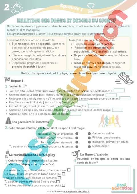 Le sport enseigne les droits (être respecté, encouragé, jouer sans jugement) et les devoirs (respecter les règles, les autres, ne pas tricher).