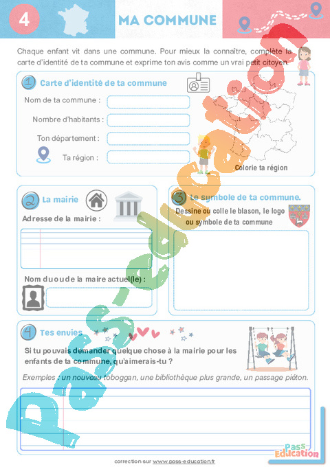 Chaque enfant vit dans une commune. Pour mieux la connaître, complète la carte d’identité de ta commune et exprime ton avis comme un vrai petit citoyen.