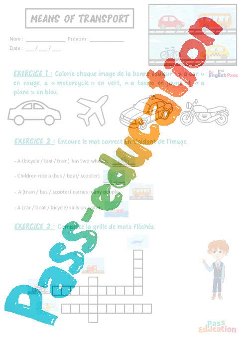 Exercices Means of transport – Apprends l’anglais avec Kelly and James pdf