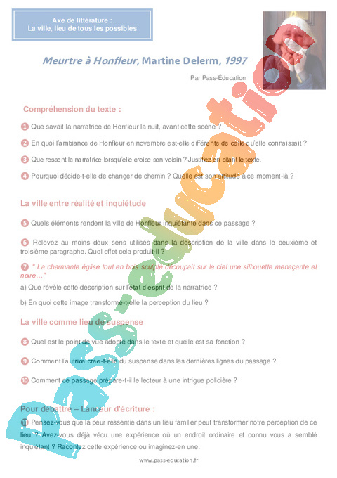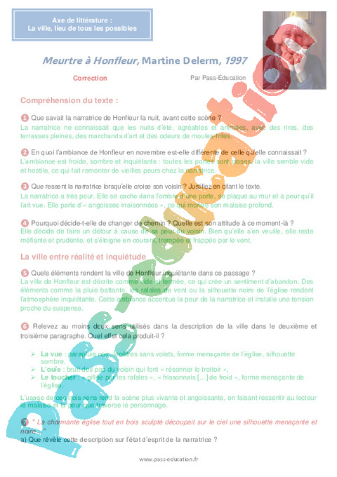 Correction Questionnaire Meurtre à Honfleur, Martine Delerm, 1997 : 2eme Secondaire pdf