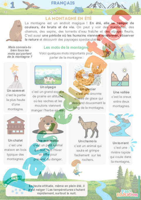 Bienvenue dans ce livret d’activités sur le thème de la montagne en été