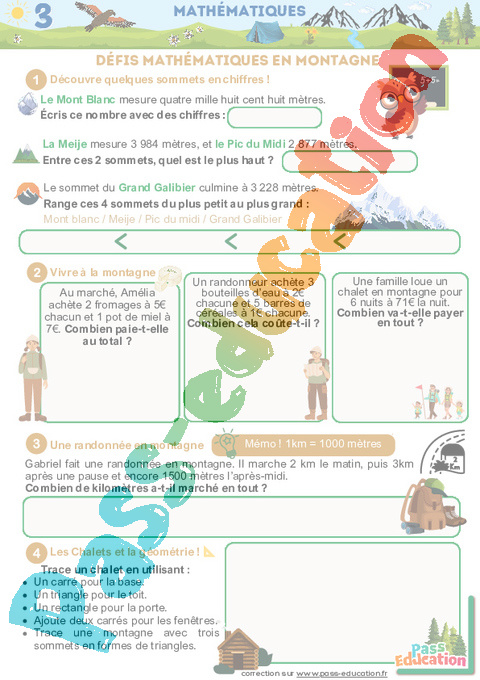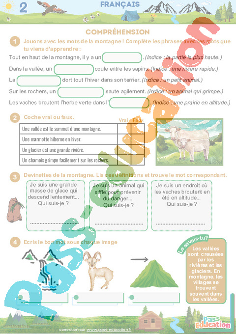 Correction Montagne en été – Fichier d’activités : 2eme, 3eme Primaire pdf