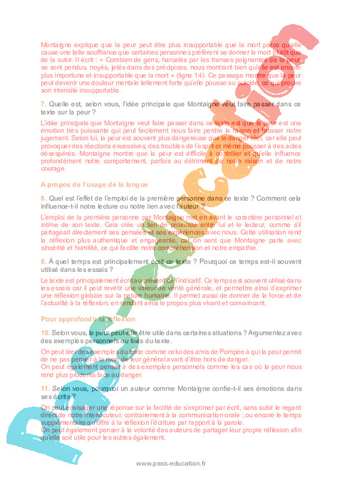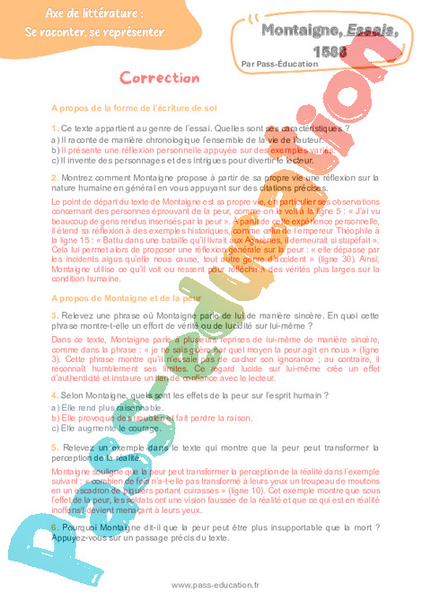 Correction Questionnaire Montaigne, Essais : 3eme Secondaire pdf