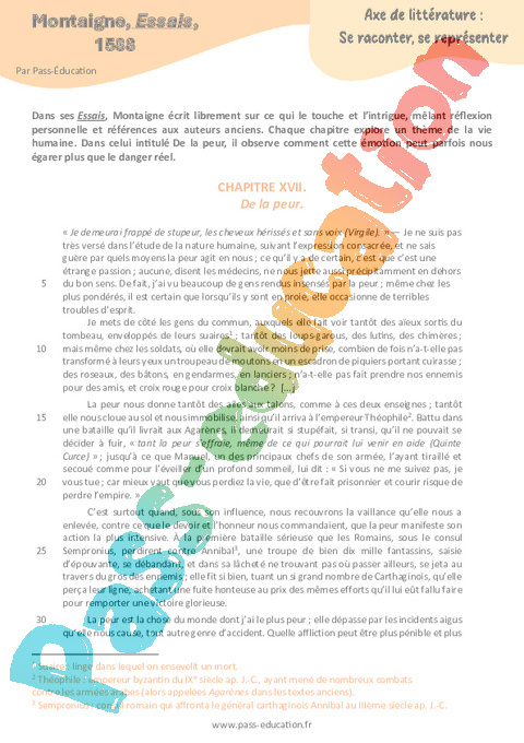 Littérature Montaigne, Essais : 3eme Secondaire pdf