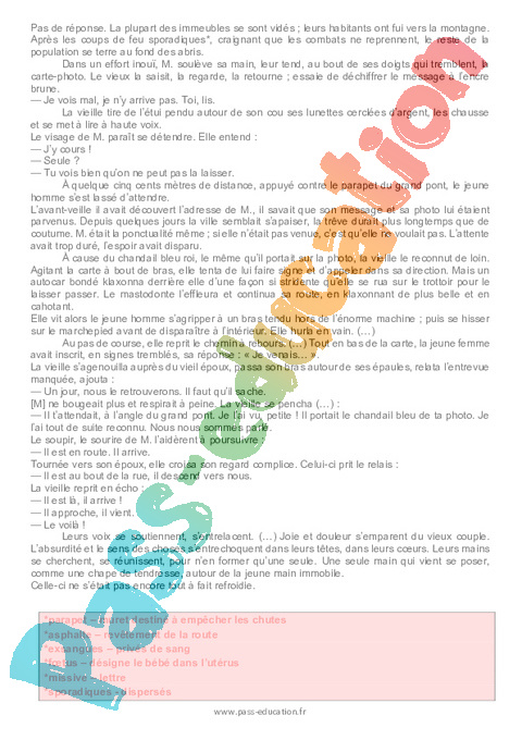 Dans la boue des rizières, sur l’asphalte* des cités, dans la torpeur des sables, serrés dans la foule que l’on frappe et décime, ou expirant dans la solitude : les massacrés, réfugiés, fusillés, suppliciés de tous les continents convergent vers cette rue, vers cette personne ; vers M., soudain unique. Cette vivante, blessée à mort.