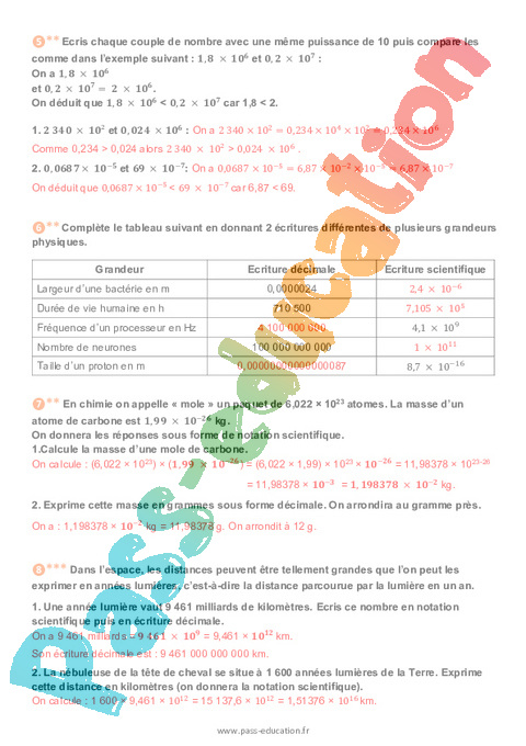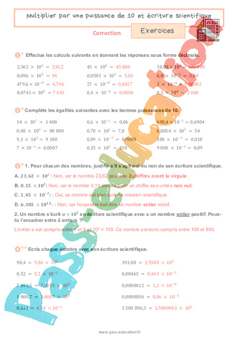 Correction Exercices Multiplier par une puissance de 10 et écriture scientifique pdf