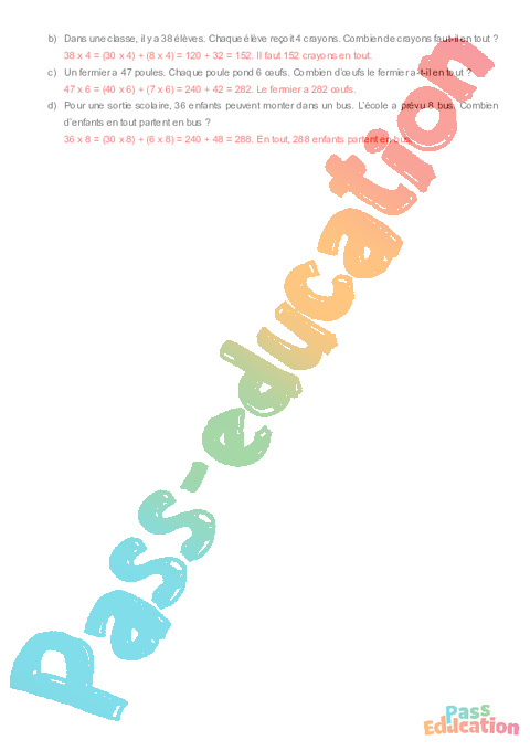 - Dans une classe, il y a 38 élèves. Chaque élève reçoit 4 crayons. Combien de crayons faut-il en tout ?