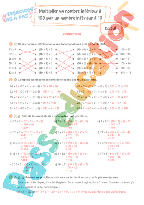 ❶ ⭐ Relie chaque multiplication à ses décompositions puis à son résultat.