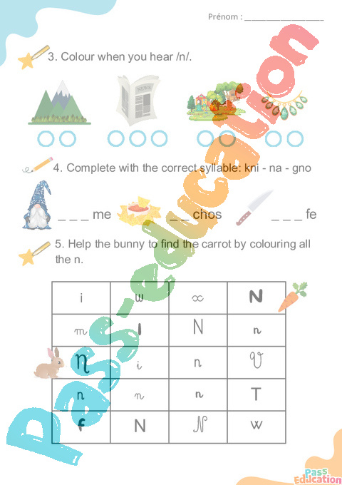 Carousel of Sounds : 3eme Maternelle 1ere, 2eme, 3eme, 4eme, 5eme Primaire – Vidéo interactive + Fiche sur : /n/ n nn kn gn.