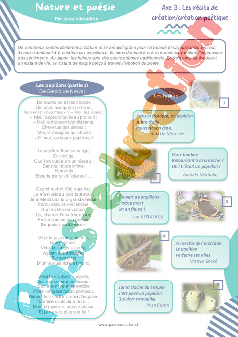 Atelier de lecture Nature et poésie (sur les papillons) : 6eme Primaire pdf