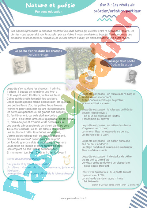 Atelier de lecture sur Nature et poésie (Victor Hugo & Alain Bosquet) en 6ème.
