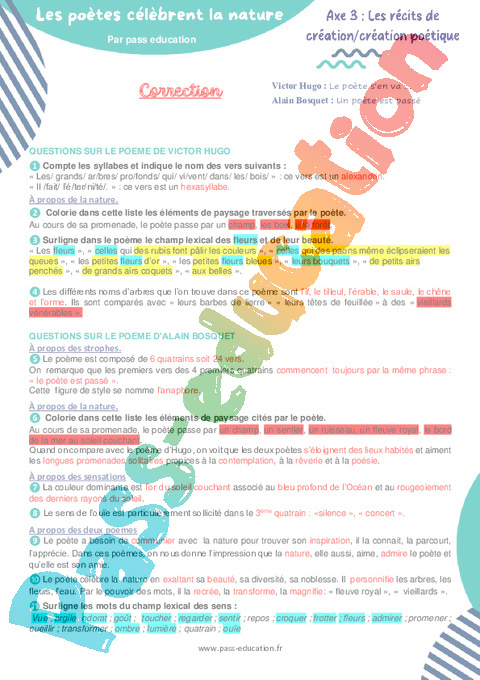 Correction Questionnaire Nature et poésie : 6eme Primaire pdf