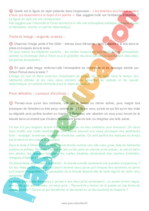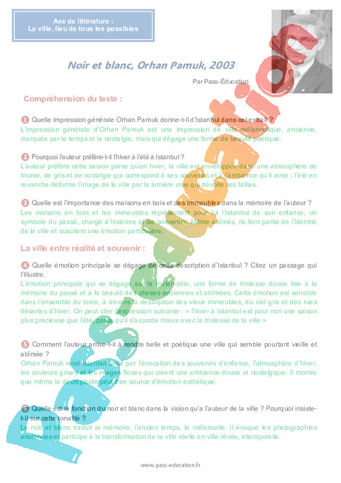 Correction Questionnaire Noir et blanc, Orhan Pamuk : 2eme Secondaire pdf