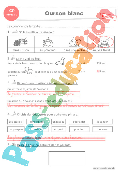 Correction Questionnaire Ourson blanc : 1ere Primaire – Luminéo pdf