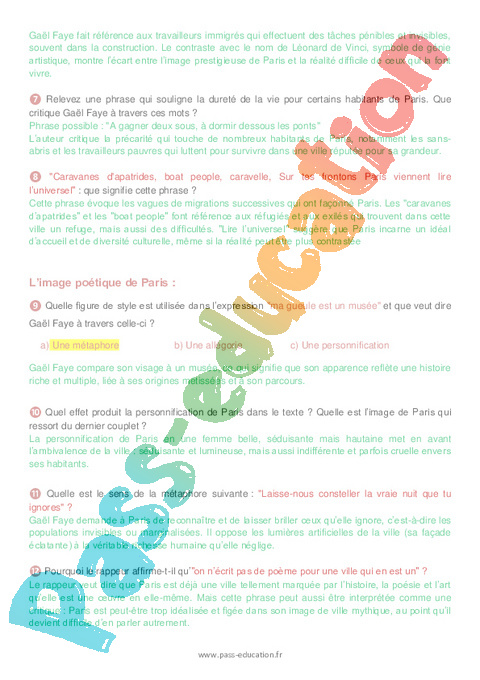 ❿ Quel effet produit la personnification de Paris dans le texte ? Quelle est l’image de Paris qui ressort du dernier couplet ?