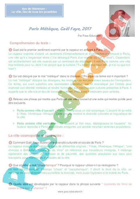 Correction Questionnaire Paris Métèque, Gaël Faye : 2eme Secondaire pdf