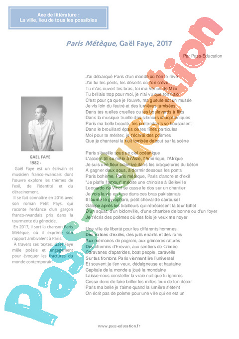 Littérature Paris Métèque, Gaël Faye : 2eme Secondaire pdf